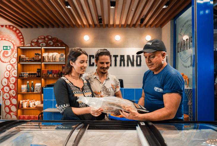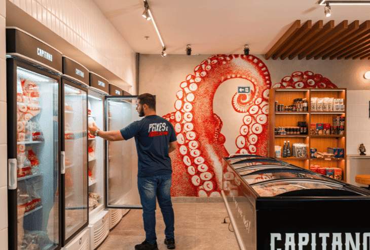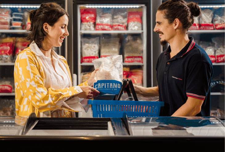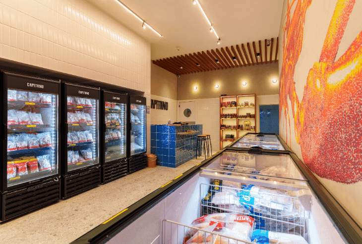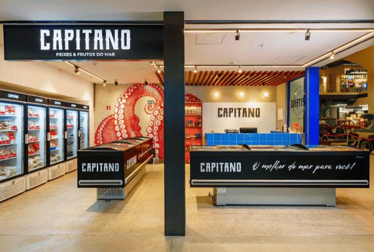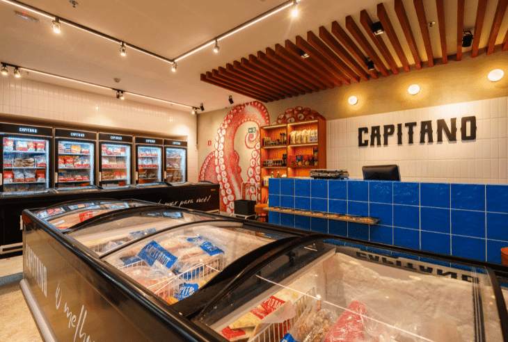 Os modelos de loja da Capitano contém produtos 100% limpos e embalados, que entregam uma qualidade idêntica ao peixe fresco, recém saído do mar.
