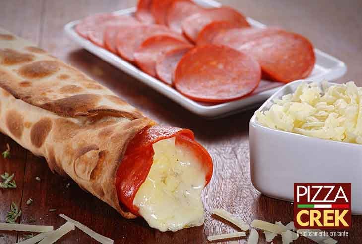 Não é Crepe, Panqueca, Cone, tampouco Taco. É Pizza Crek! Massa Extra Fina e crocante, a qual é recheada com os mais variados e saborosos ingredientes. São mais de 70 sabores de Pizzas (salgadas, doces e Light) a escolha dos clientes.