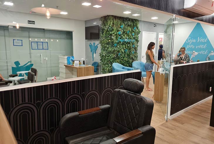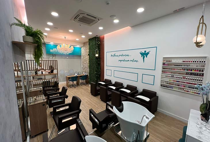 Um salão de beleza completo onde a cliente desfruta momentos de relaxamento e descontração, enquanto cuida de toda sua beleza.